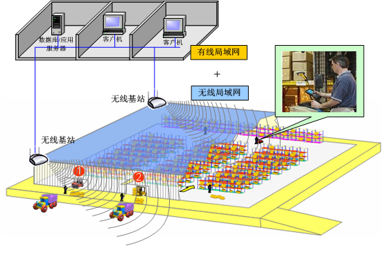 下圖是一個(gè)典型的無線倉儲(chǔ)系統(tǒng)網(wǎng)絡(luò)設(shè)計(jì)方案,用戶需要在現(xiàn)有的有線(局域)網(wǎng)絡(luò)基礎(chǔ)之上將其延伸至倉庫現(xiàn)場,使得無線網(wǎng)絡(luò)信號(hào)通過接入點(diǎn)的部署覆蓋需要的區(qū)域,現(xiàn)場操作者使用移動(dòng)終端設(shè)備可以實(shí)時(shí)與后臺(tái)系統(tǒng)進(jìn)行數(shù)...